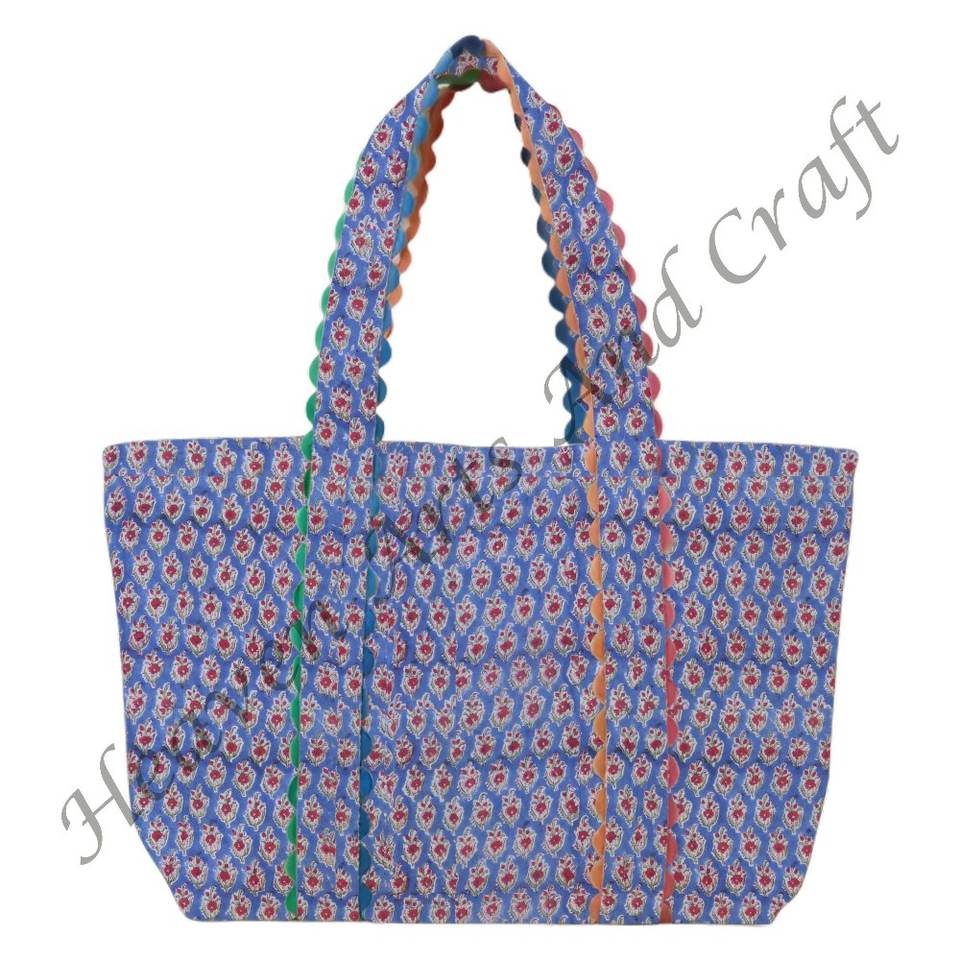 กระเป๋าโท้ทผ้าฝ้ายอินเดียพิมพ์ลาย Ric Rac สไตล์โบฮีเมียน กระเป๋าสะพายไหล่ผู้หญิง กระเป๋าทำมือ