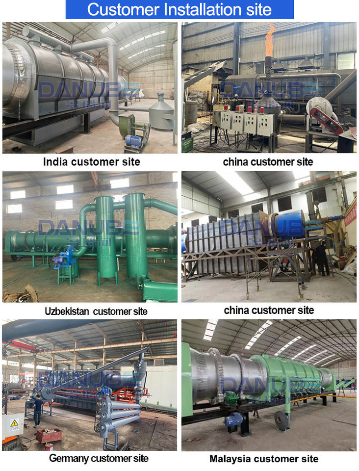 เครื่องทำถ่านคาร์บอไนซ์แบบต่อเนื่องเปลือกปาล์มเศษไม้