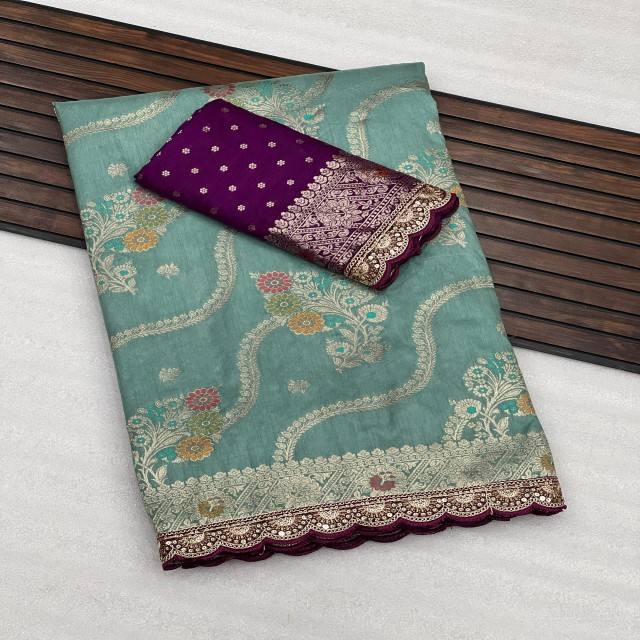 ผ้าส่าหรีผ้าไหมโดลาจากนักออกแบบที่อุดมไปด้วยเนื้อนุ่มไหลด้วยการทอผ้าเมนาการิแบบดั้งเดิมและหรูหรา zari pallu