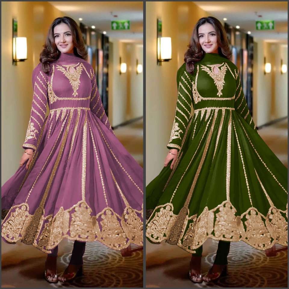 ชุดเดรสปักเลื่อมหนัง georgette เทียมและส่วนล่างพร้อม dupatta