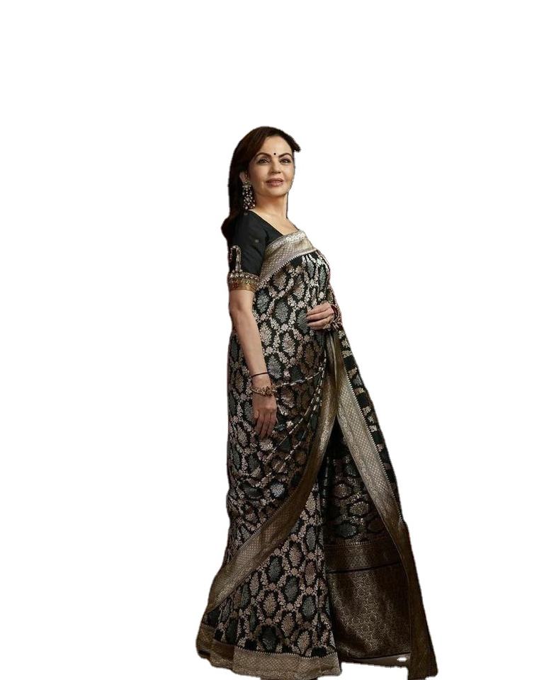 นิตา อัมบาเนีย ผู้หญิงผู้สง่างามและมีรสนิย์ ใส่ผ้าซารีไหมบานาราซี แคตัน วิสโคส พร้อมเสื้อ จากบริษัท ชรี อินเดียน เอ็กซ์พอร์ต ราคาขายส่ง ปี 2024