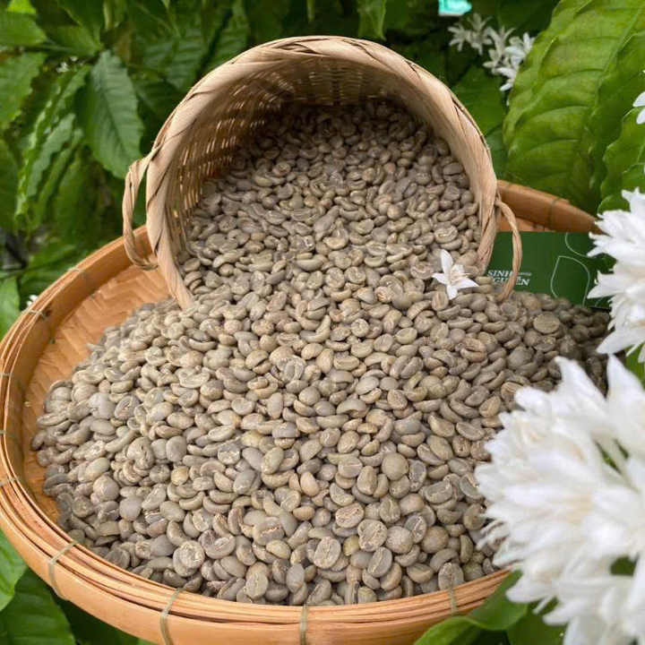 เมล็ดกาแฟอาราบิก้าสีเขียวเข้ม คุณภาพพรีเมียม ออร์แกนิค 99% คั่วไม่ได้ รสหวานน้ำผึ้ง โรงงานผลิตโดยตรง บรรจุภัณฑ์ขนาดใหญ่ 60 กก. เวียดนาม ซินห์ นิวเกน