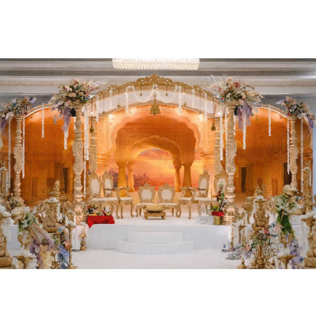 งานแต่งงานแบบอินเดียสุดหรูหราสไตล์ชนบท พร้อมมันดาปแบบกำหนดเองได้ งานแต่งงานอินเดียแบบดั้งเดิมที่ทำจากไม้ น้ำหนักเบา สำหรับงานแต่งงานอินเดียในลอนดอน