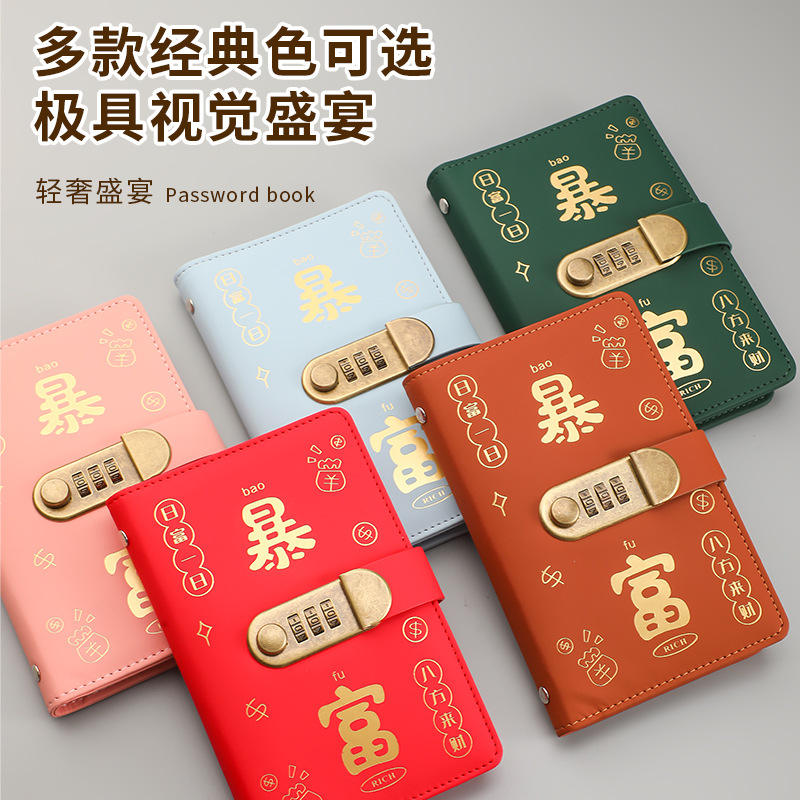กล่องเก็บเงินแบบล็อครหัสผ่าน Rich Quick รุ่น A6 ปกหนัง PU พร้อมดีไซน์หมุดย้ำ สำหรับเด็กอายุ 14 ปีขึ้นไป