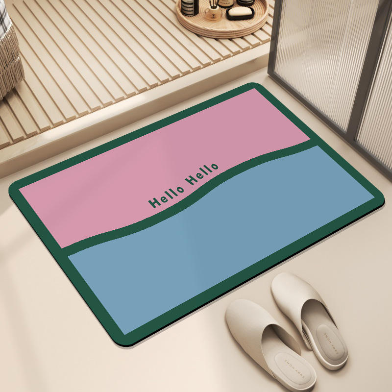 พรมเช็ดเท้าดูดซับน้ำได้ดี ดีไซน์มินิมอล รูปทรงสี่เหลี่ยมผืนผ้า ผลิตจากดินไดอะตอมเมียส์ ลายบล็อกสีสันสดใส กันลื่น เหมาะสำหรับห้องน้ำ