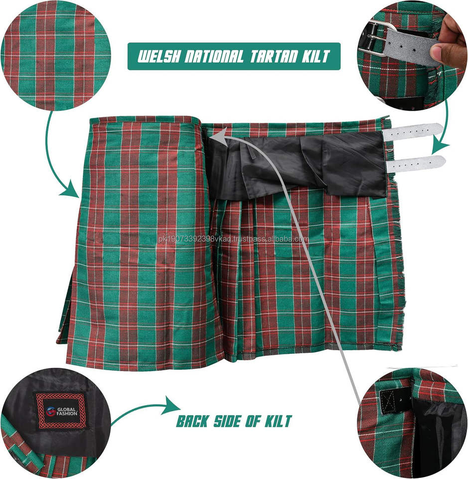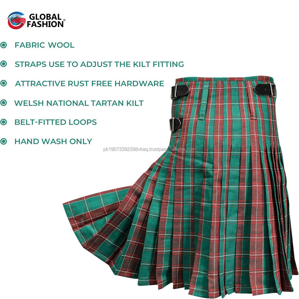 กilt ลายทาร์ทันแบบเวลส์แท้สำหรับผู้ชาย สไตล์สก็อต คุณภาพสูง ผลิตจากผ้าขนสัตว์ ผ้าสั่งทำพิเศษ ขายดี ปี 2026