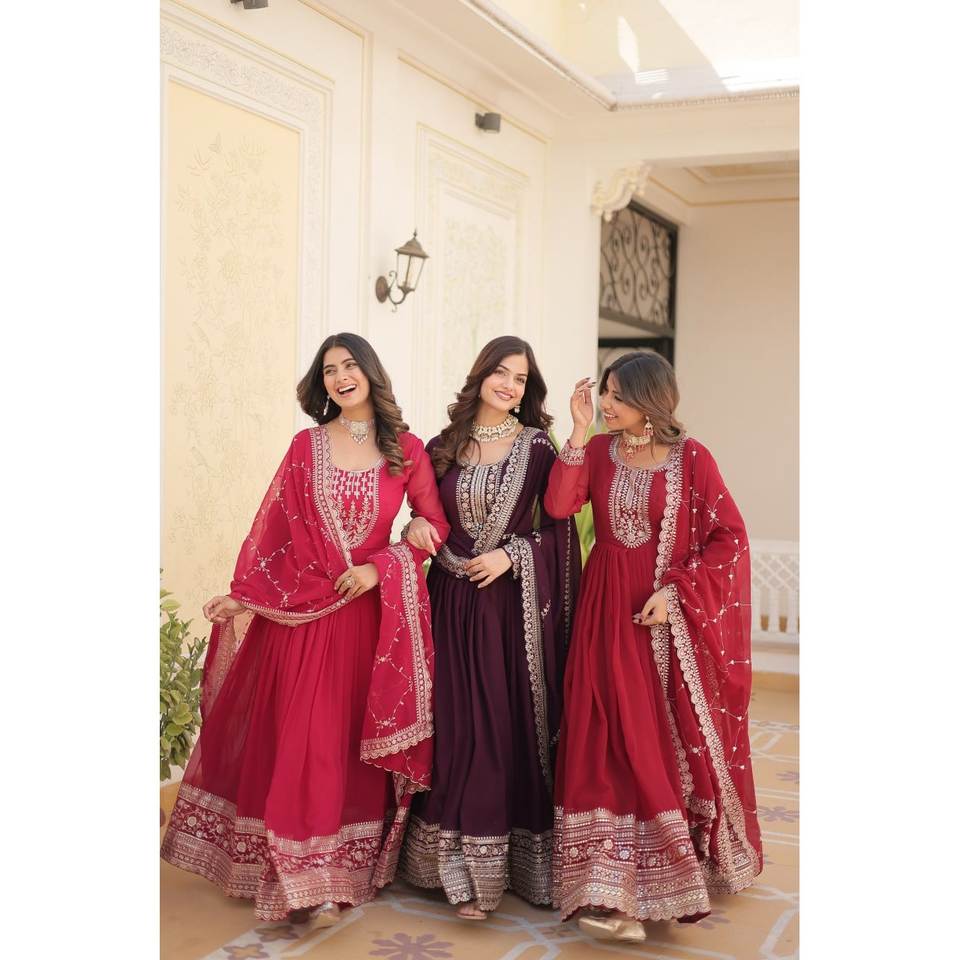 Rich Sequins Embroidered Evening Gown Party Wear with Elegant Worked Design
