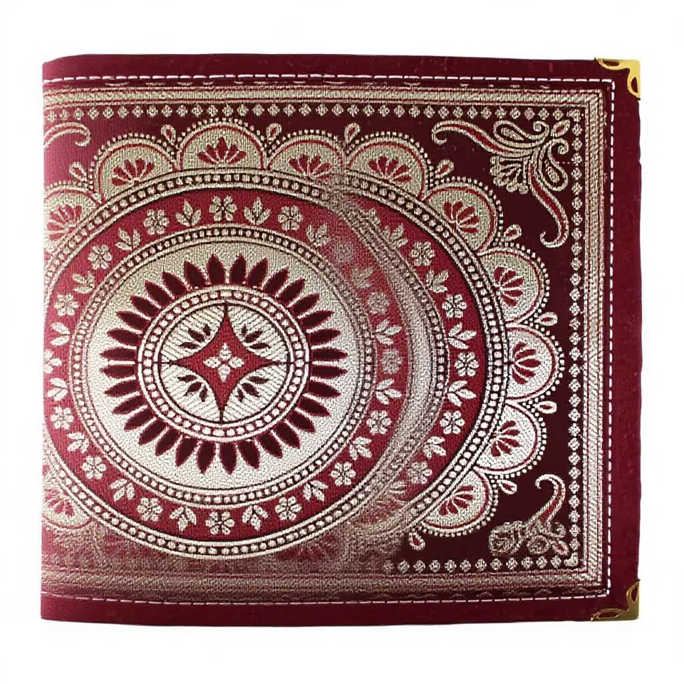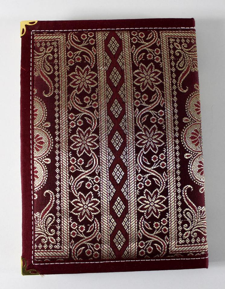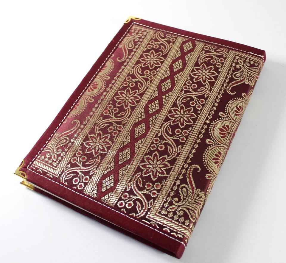 ปกสมุดบันทึกผ้าทอประดับตกแต่งอย่างหรูหรา ด้วยผ้าไหมสีสันสดใสและด้ายสีทองสีเงิน ทำจากวัสดุกระดาษ