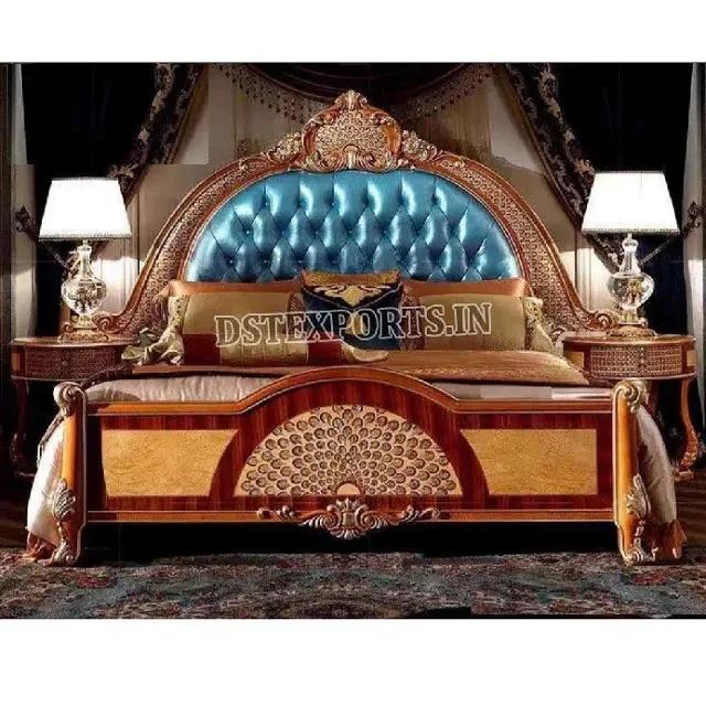 เตียงดีไซน์แบบริคเตียงแบบโบราณพร้อมโต๊ะข้างเตียงสัมผัสแบบโบราณหรูหราโต๊ะข้างเตียงแกะสลักด้วยมือดีไซน์เนอร์พร้อมโต๊ะข้าง