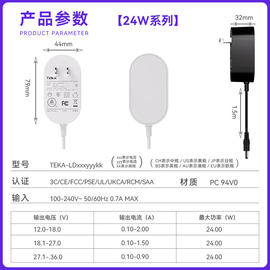 ริดเดิล 12V2A 24V1A อะแดปเตอร์แปลงไฟสำหรับอุปกรณ์ให้แสงสว่าง GB19510 EN61347 ป้องกันดวงตา PC ทนไฟ