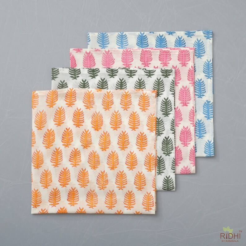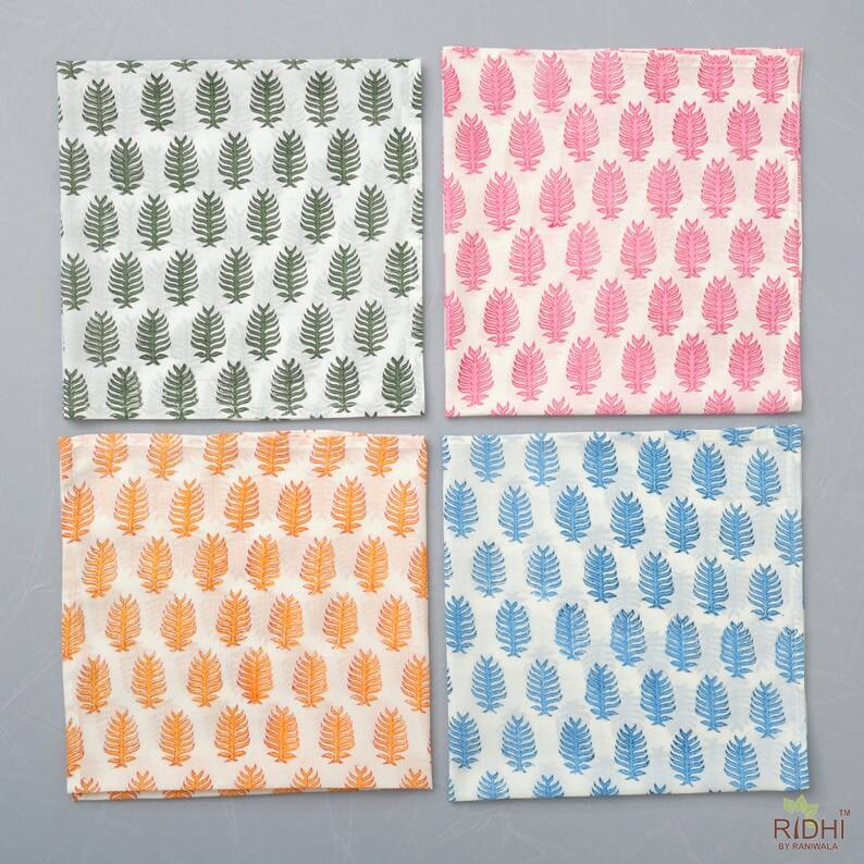 Ridhi 2025คอลเล็คชั่นผ้าเช็ดปากสี่เหลี่ยมผ้าฝ้ายพิมพ์ลายใบไม้แบบแฮนด์เมดอุปกรณ์เสริมมาใหม่