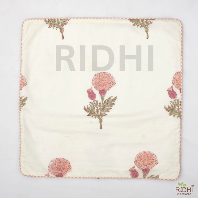 Ridhi Bohemian Pink & White Floral 100% Cotton Throw Pillow Cover with Block Print Piping Removable & Washable for Bed Sofa Use