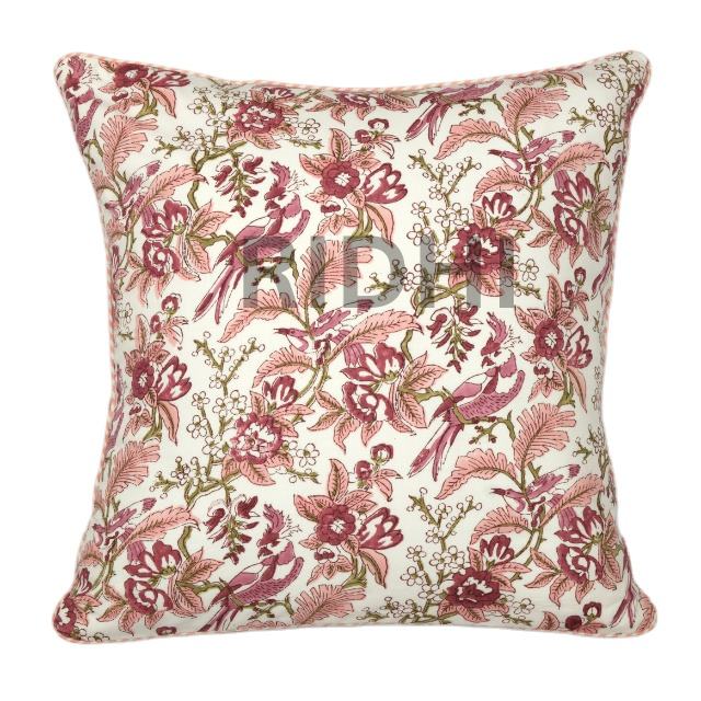 ปลอกหมอนอิงผ้าฝ้ายลายดอกหลากสี Ridhi Trending พร้อมขอบเย็บ, ปลอกหมอนอิงพิมพ์ลายแบบ Block Print ใช้ซ้ำได้สำหรับเตียง, ห้องรับแขก