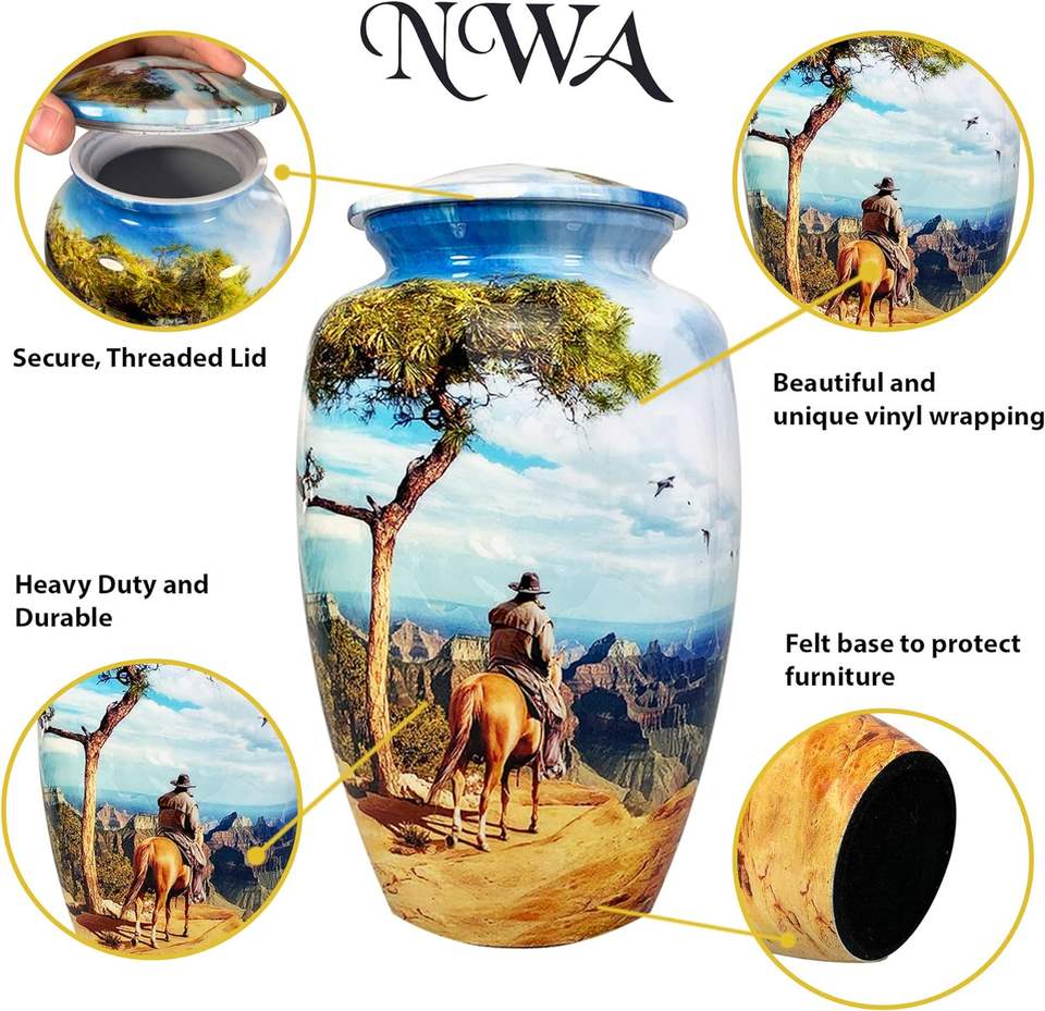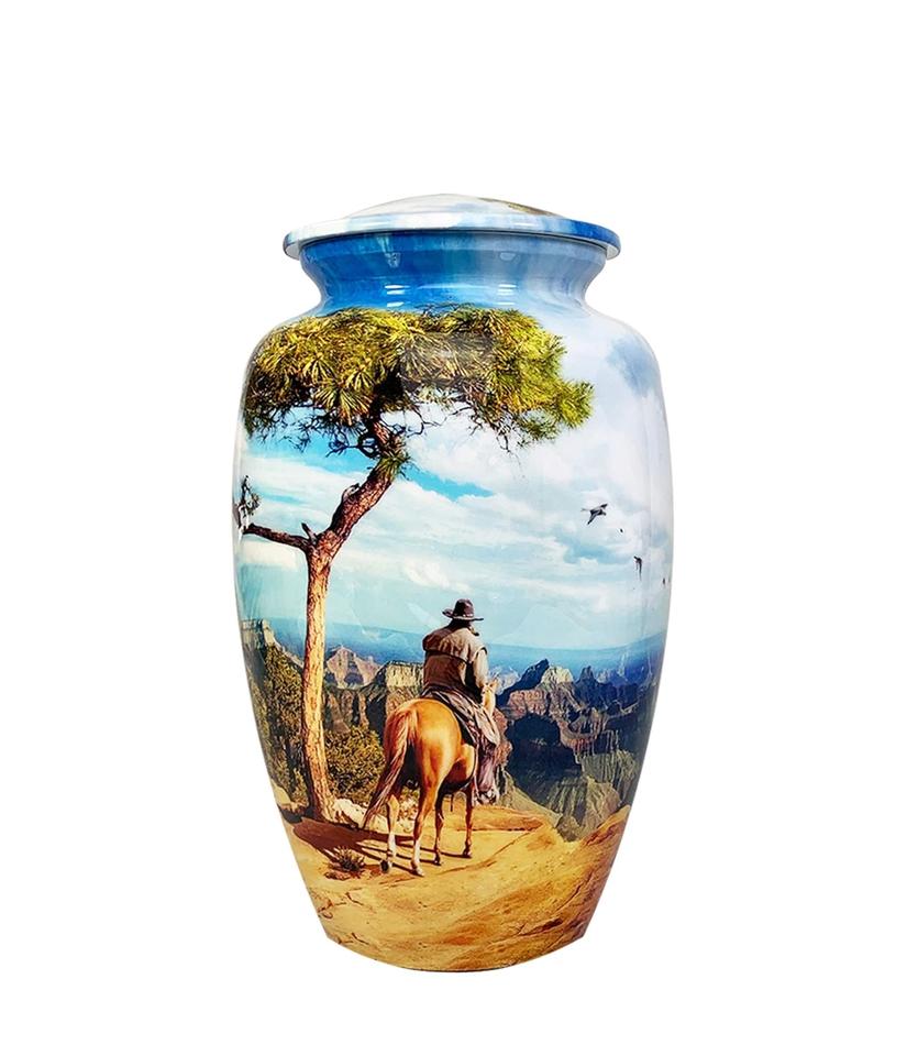 โกศบรรจุอัฐิรูปคาวบอยขี่ม้า แบบสั่งทำพิเศษ พร้อมถุงกำมะหยี่เข้าชุด ความจุ 200 คิวบิกอินช์