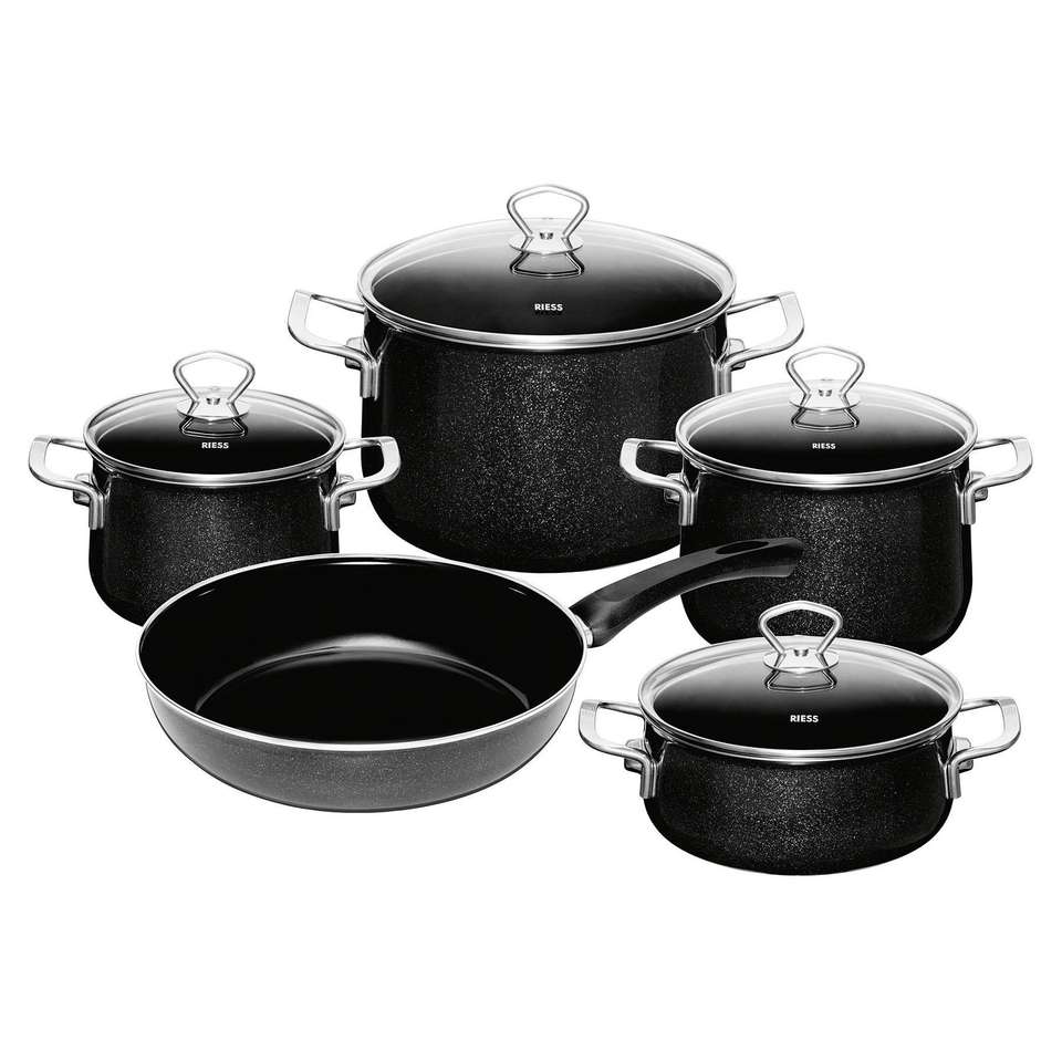 ชุดเครื่องครัวรีสส์ แบล็คเมจิก 5 ชิ้น พร้อมด้ามจับสแตนเลสและฝาแก้วสำหรับใช้กับเตา