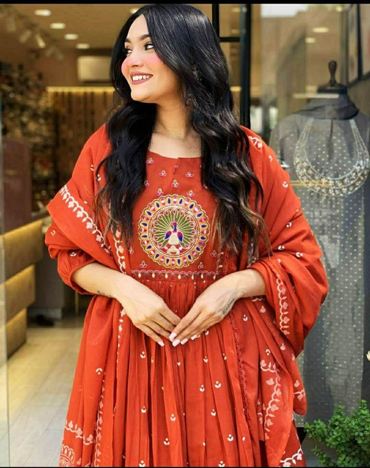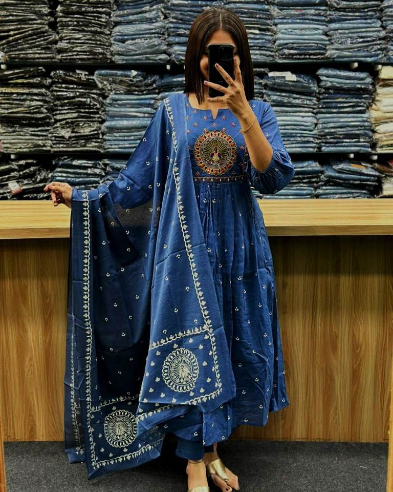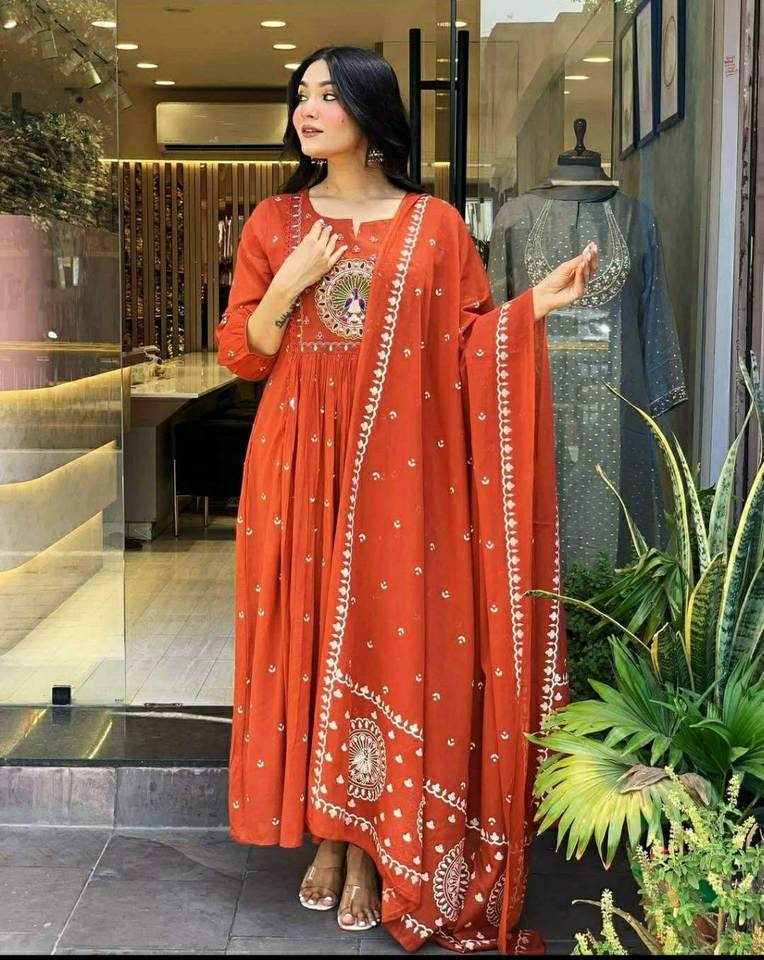 ชุดอานาร์กาลีวินเทจพร้อมกางเกงผ้าฝ้ายและผ้าคลุมไหล่ลายมัลมาล สำหรับงานปาร์ตี้ เสื้อผ้าพรีเมียม