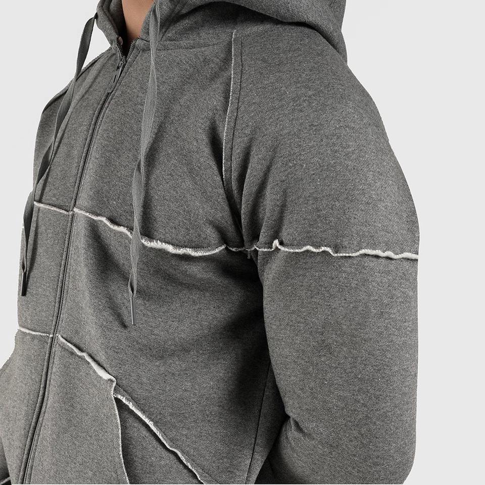 Rigger เสื้อมีฮู้ดกระเป๋าจิงโจ้มีแถบป้ายทอทรงหลวมออกแบบได้ตามต้องการเสื้อผ้าแนวสตรีทแบบปักได้ตามต้องการมีซิป