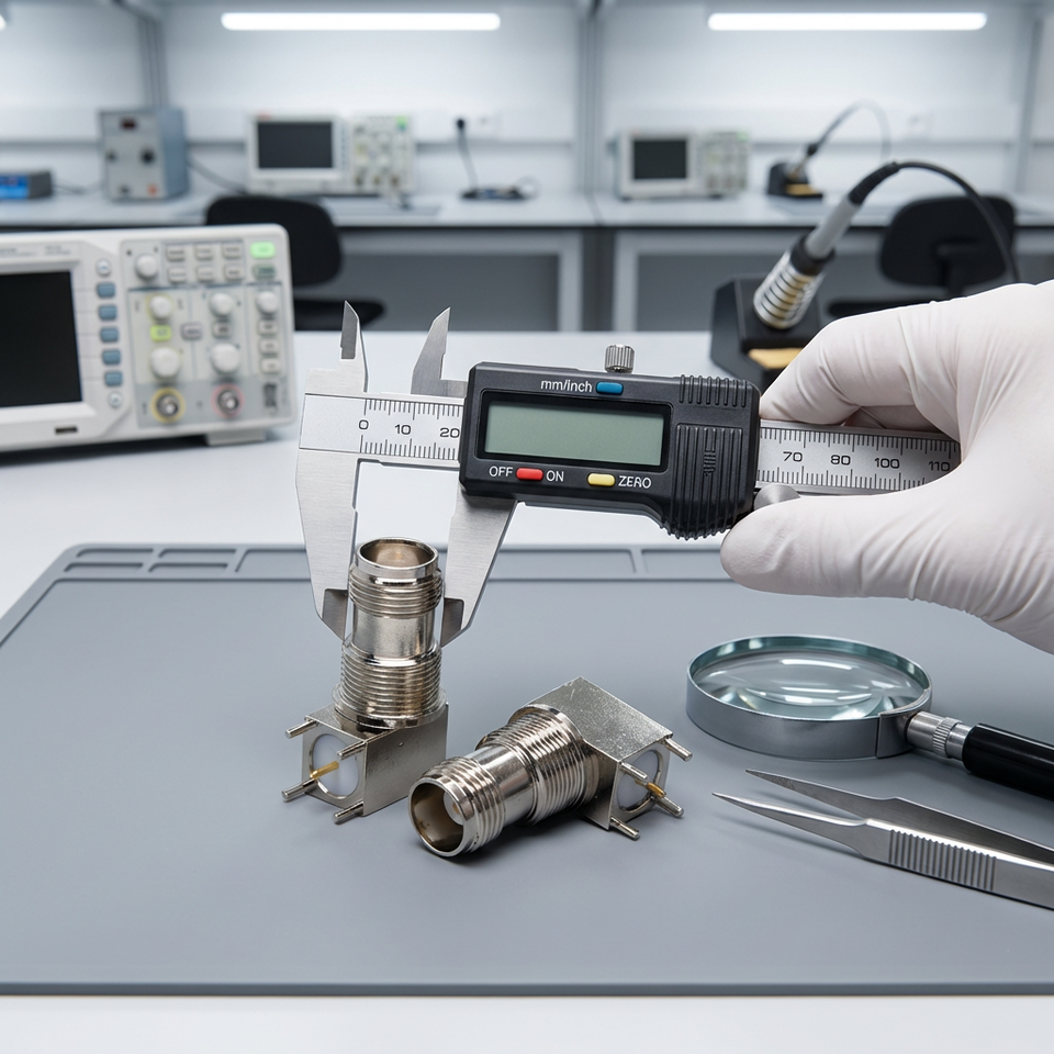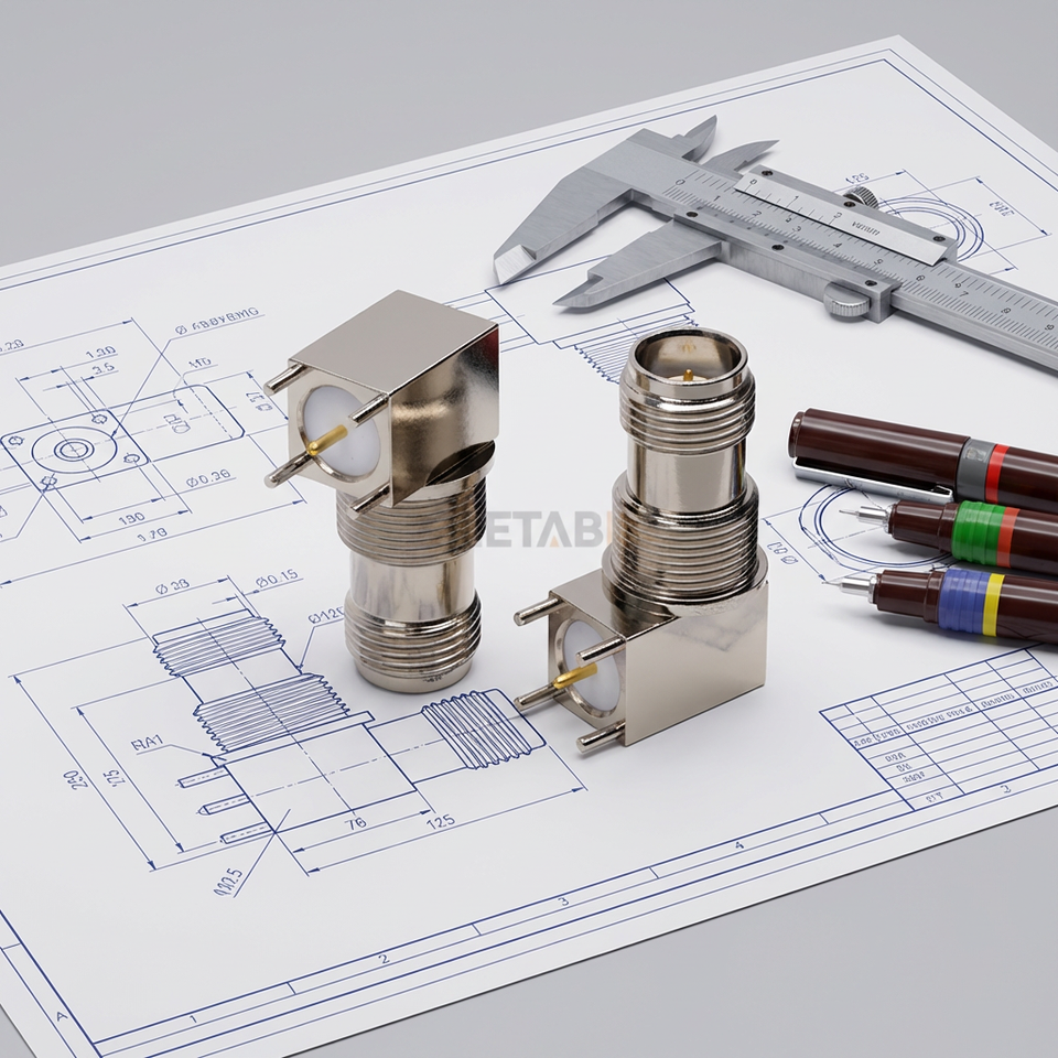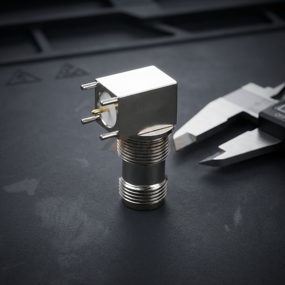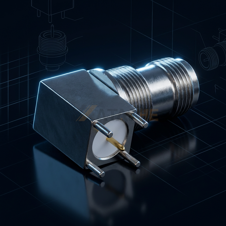 ขั้วต่อแจ็คตัวเมีย TNC แบบมุมฉาก 50 โอห์ม ชนิดบัดกรี RF โคแอกเชียล แบบติดตั้งบนแผง
