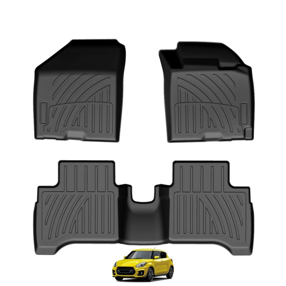 พรมปูพื้นรถยนต์แบบกันน้ำกันลื่นสีดำ 3 ชิ้น ชุดเต็ม สำหรับรถยนต์ซูซูกิ สวิฟท์ ปี 2018 พวงมาลัยขวา รุ่น KQD TPE อุปกรณ์ตกแต่งภายใน