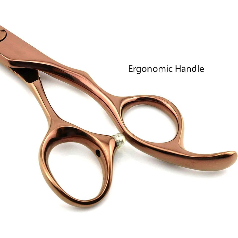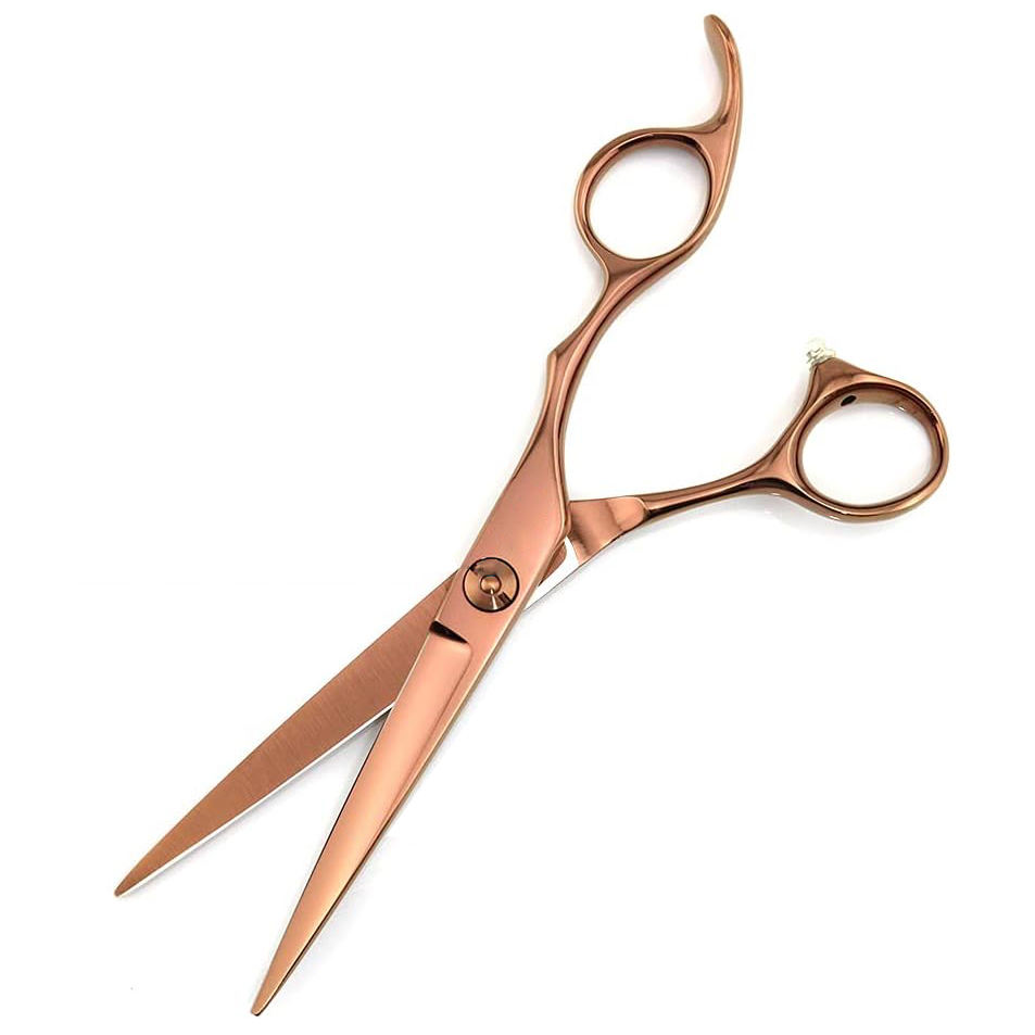 กรรไกรตัดผมสำหรับคนถนัดขวา สีโรสโกลด์ คุณภาพสูง ผลิตจากเหล็กกล้าไร้สนิม 4Cr13 ปลายตรงคมกริบ ด้ามจับออกแบบตามหลักสรีรศาสตร์
