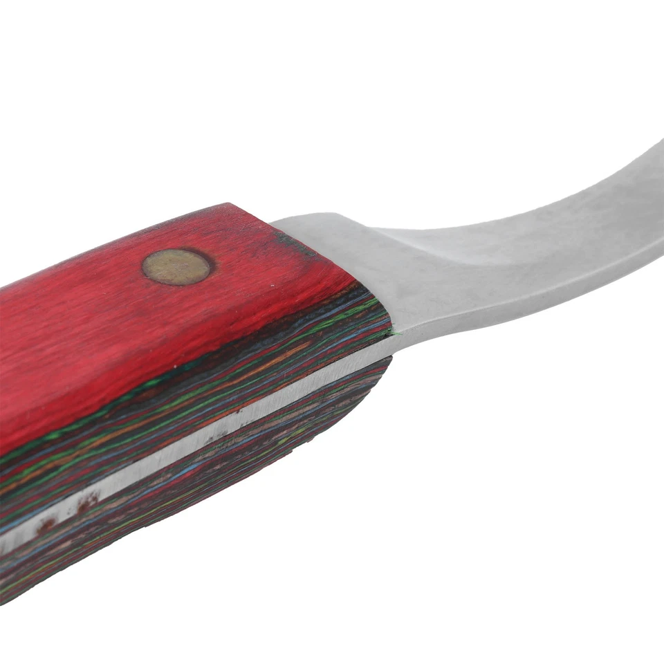 มีดฮูปเหล็กสแตนเลสสำหรับทำความสะอาดมือขวาด้ามจับไม้ทนทานเครื่องมือดูแลกีบ