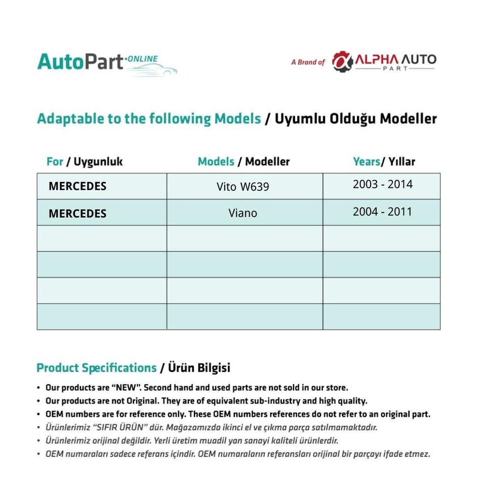 แจ็คพลาสติกหน้าต่างด้านขวาสำหรับ Mercedes Viano (จัดส่งจากผู้ผลิตไก่งวง) รหัสผลิตภัณฑ์: FD112802