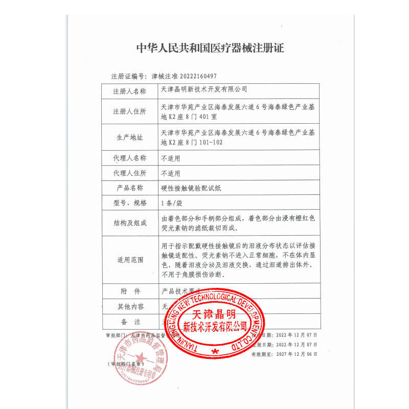 แถบทดสอบการใส่คอนแทคเลนส์แบบแข็ง 1 ชิ้น ชุดตรวจวินิจฉัยโรคตาแบบใช้แล้วทิ้งสำหรับการตรวจตา