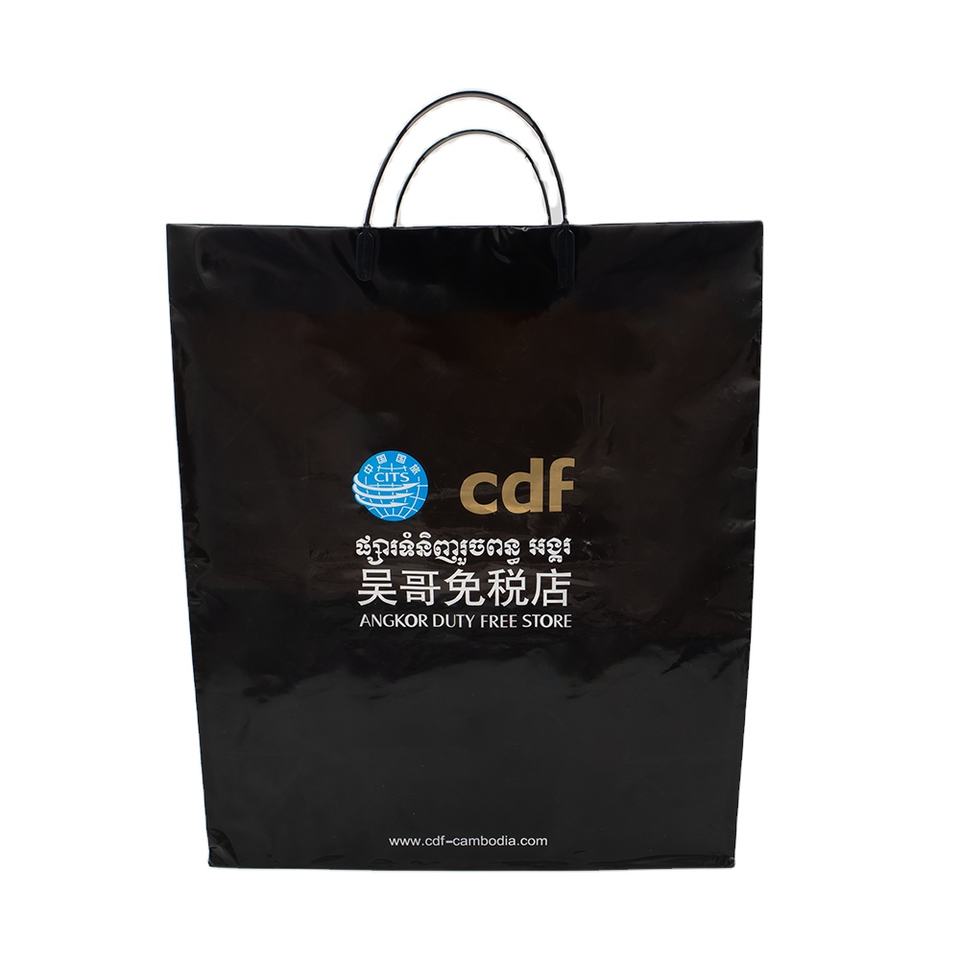 ถุงพลาสติกสำหรับช้อปปิ้งแบบใช้ซ้ำได้หรูหราออกแบบโลโก้ได้อย่างแข็งแรงใช้ซ้ำได้