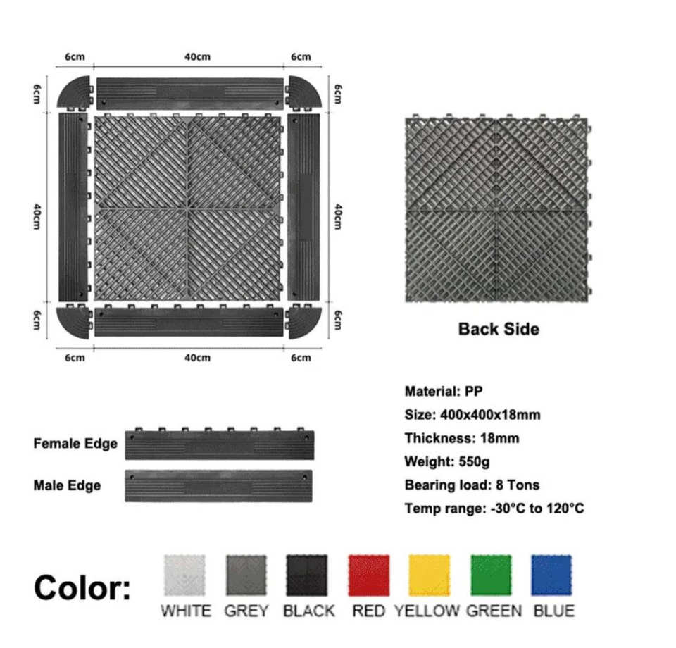 แผ่นปูพื้นโรงรถทำจากพลาสติก PP เสื่อปูพื้นโรงรถหลากสี