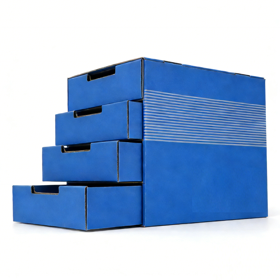กล่องของขวัญกระดาษคราฟท์แบบลิ้นชักหลายชั้นแข็งแรงทนทาน ผลิตจากวัสดุรีไซเคิล เคลือบด้าน ปั๊มนูน พิมพ์ลายตามสั่ง พร้อมริบบิ้น