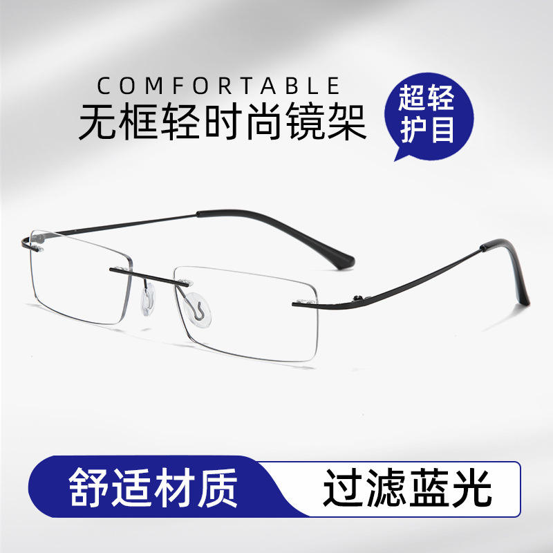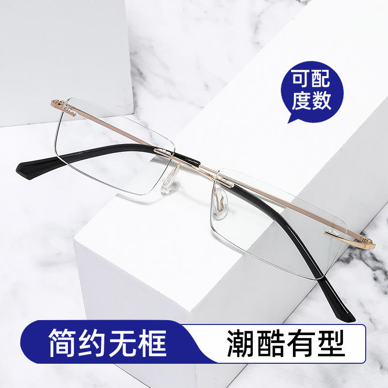 แว่นตากรอบโลหะไร้ขอบ สำหรับทุกเพศ ขนาดกลาง ป้องกันแสงสีฟ้า เลนส์เรซิ่น ค่าดัชนีการหักเหแสง 1.55 หมายเลขชิ้นส่วน