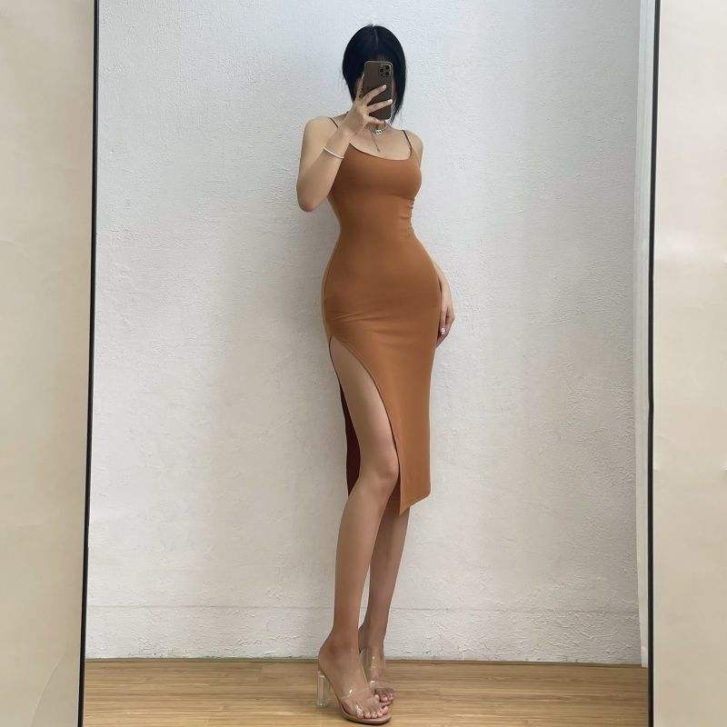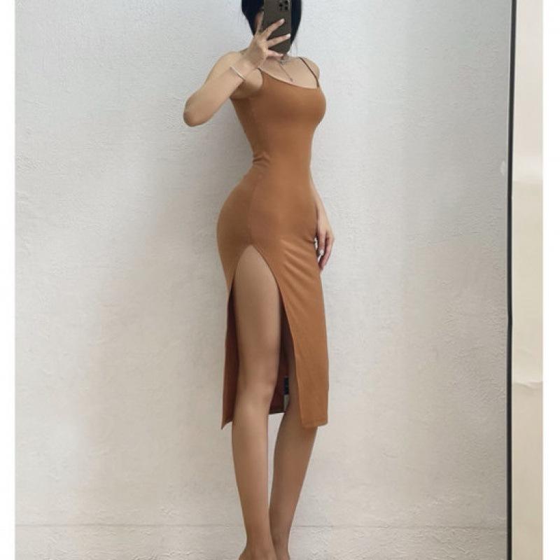 Rimocy ชุดเดรสยาวเซ็กซี่แขนกุดทรงสลิมสำหรับผู้หญิงชุดเดรสสายเดี่ยวผ่าสูงสำหรับปาร์ตี้คลับชุดเดรสบอดี้คอนสำหรับผู้หญิง2024ใหม่
