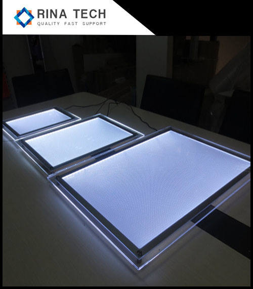 แผงไฟ LED แบ็คไลท์ขนาดเล็กแบบไร้ขอบสีขาว รุ่นปรับแต่งพิเศษจาก Rina Tech สำหรับงานแสดงสินค้า ให้ความสว่างสูงพิเศษ