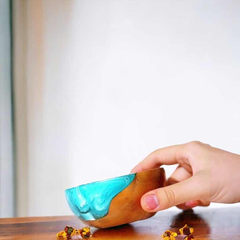 ถ้วยเสิร์ฟรูปทรงวงแหวน สำหรับบ้านและของตกแต่งบ้าน ลายชายหาด ทำจากเรซิ่นและไม้ เหมาะสำหรับอาหารเรียกน้ำย่อย มะกอก น้ำจิ้ม และอื่นๆ
