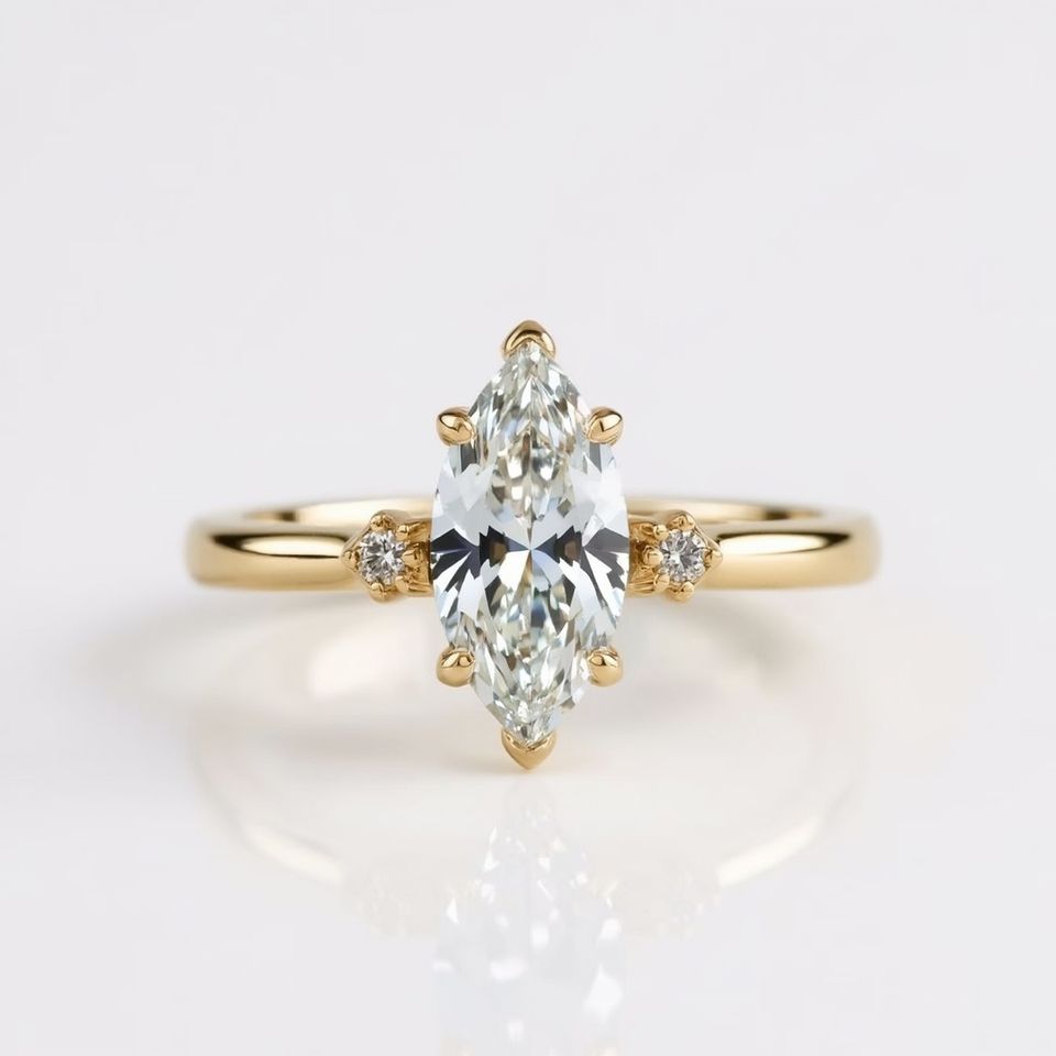 แหวนหินข้างประดับโรเดียมสำหรับงานแต่งงานและงานเลี้ยงหมั้นสำหรับผู้หญิงทอง14K ประดับเพชร