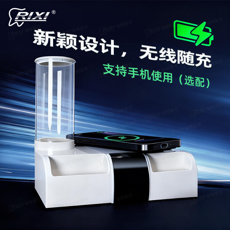 ที่วางเก้าอี้ทำฟัน Rixi พร้อมที่วางแก้วและกล่องใส่ทิชชู่ สีขาว รองรับการชาร์จไร้สาย สำหรับใช้งานเชิงพาณิชย์