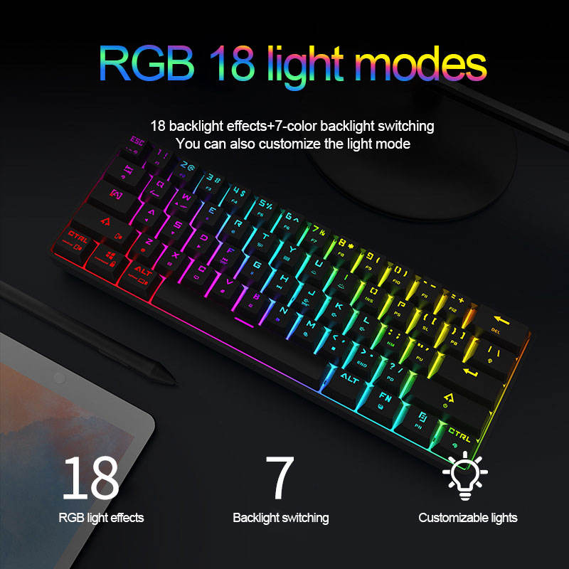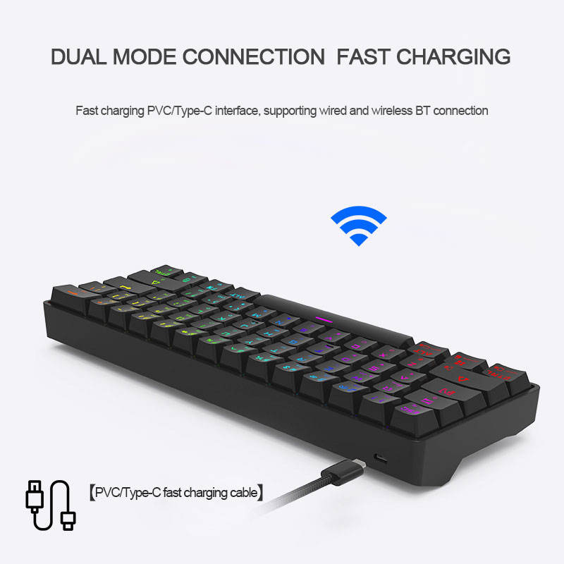 คีย์บอร์ดเกมมิ่ง Rk61กลไก,60% คอมพิวเตอร์แล็ปท็อปคอมพิวเตอร์ BT USB ไร้สาย RGB สำหรับโทรศัพท์มือถือแอนดรอยด์โปร
