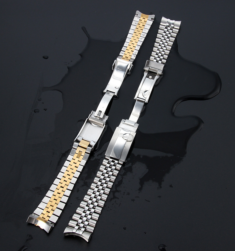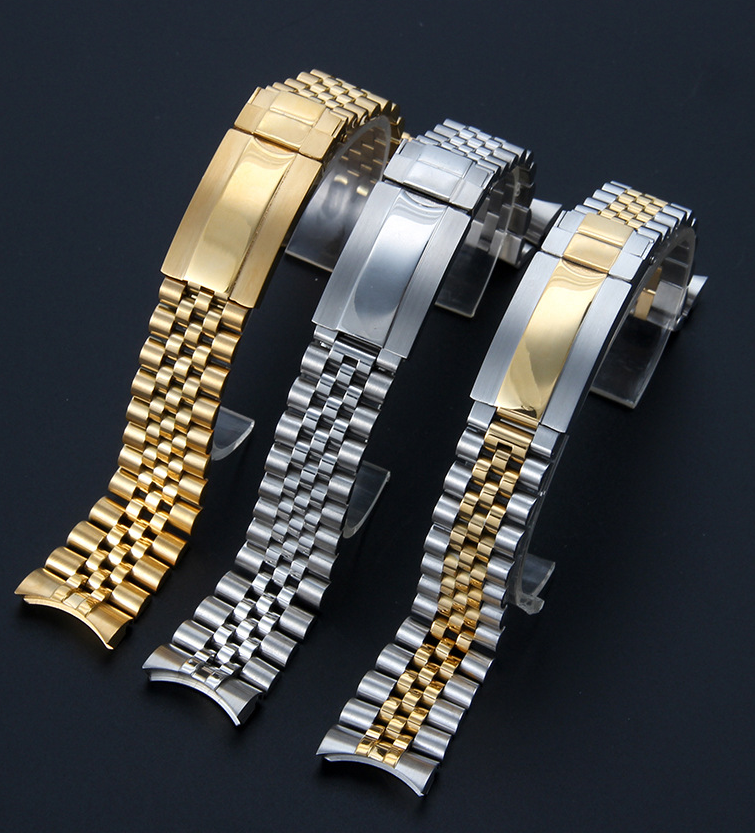 สายนาฬิกาโรเล็กซ์แบบจูบิลี่ ขนาด 20 มม. สีเงิน ปลายโค้งแบบโปร่ง พร้อมข้อต่อแบบสกรูแข็งแรง หัวเข็มขัดสแตนเลส
