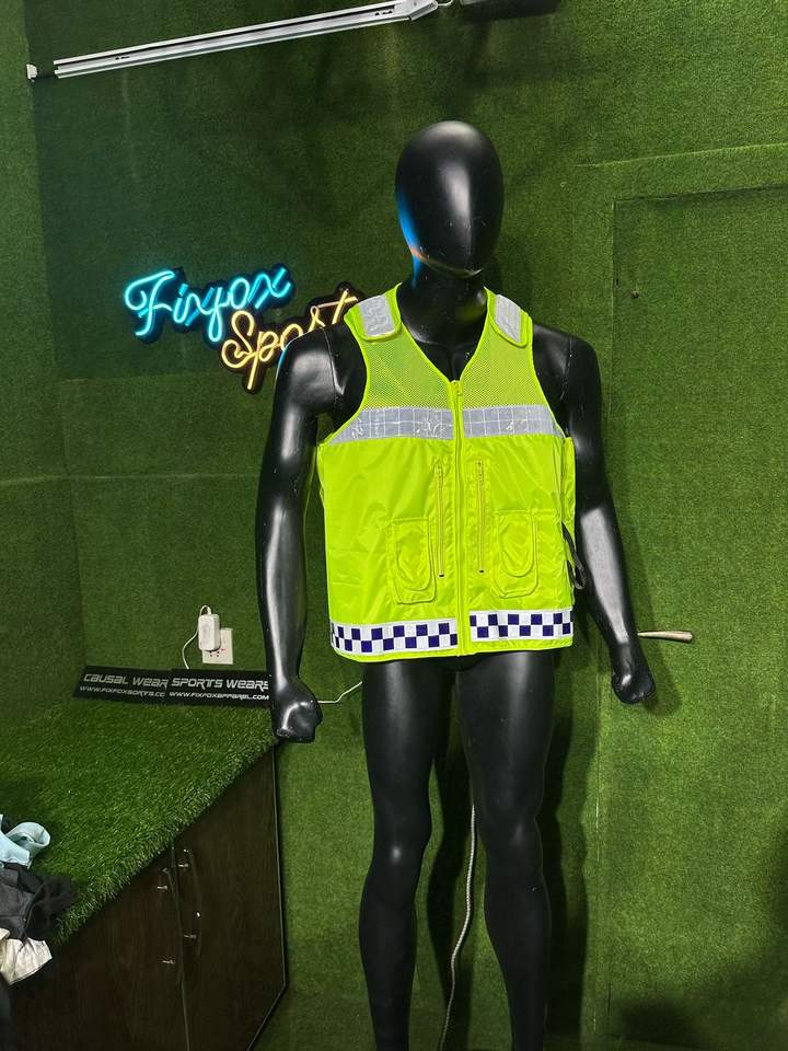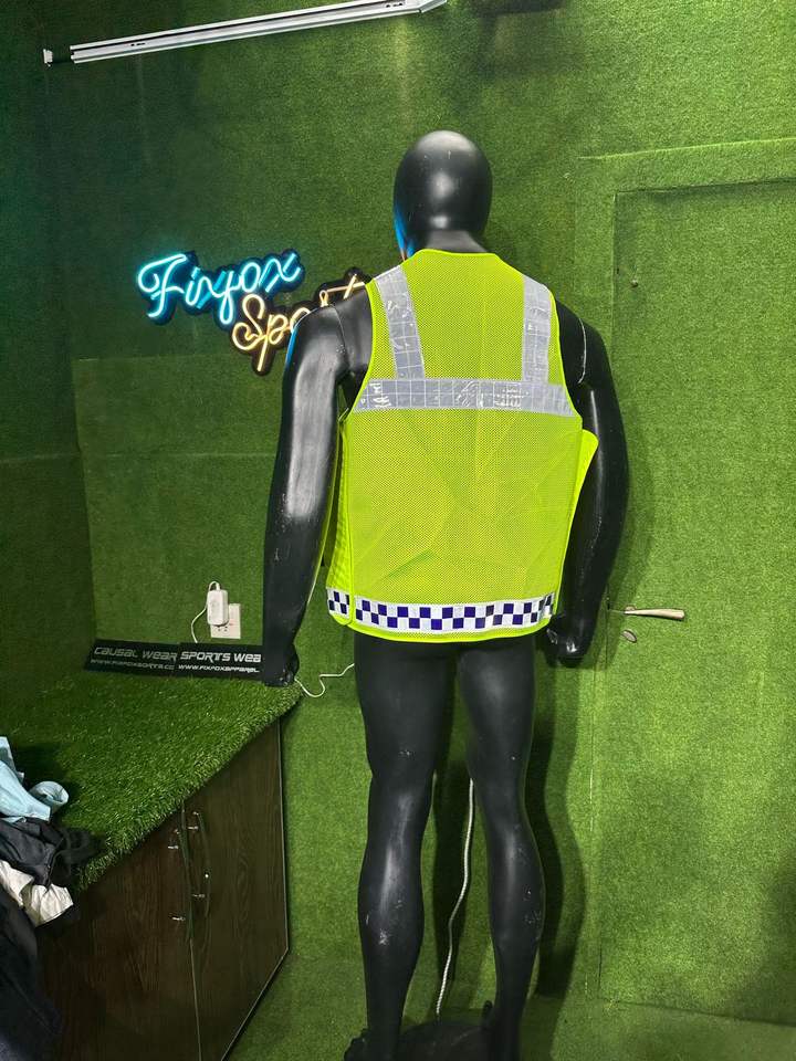เสื้อกั๊กนิรภัยสะท้อนแสงแอนซิคลาส1สำหรับวิ่งไฟ LED สีเขียวเรืองแสงกันน้ำสีสะท้อนแสง
