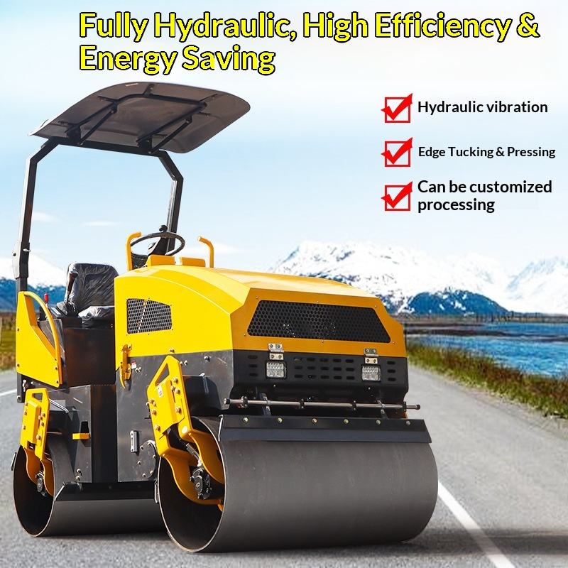 รถบดถนนแบบมือถือขนาดเล็กชนิดสั่นสะเทือน ล้อเหล็กเดี่ยวและคู่ 1 ตัน 3 2 ตัน เครื่องบดอัดแบบสั่นสะเทือน