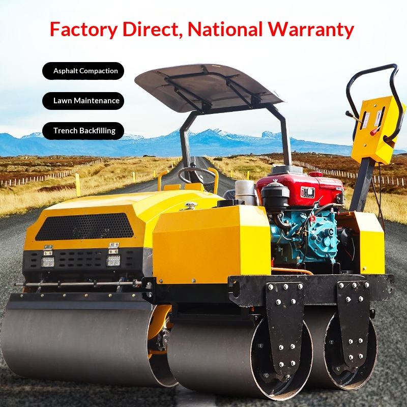 รถบดถนนแบบสั่นสะเทือน 3 ล้อเหล็กคู่ 1 ตัน แบบมือถือ สำหรับบดอัดดินและงานขุดร่อง