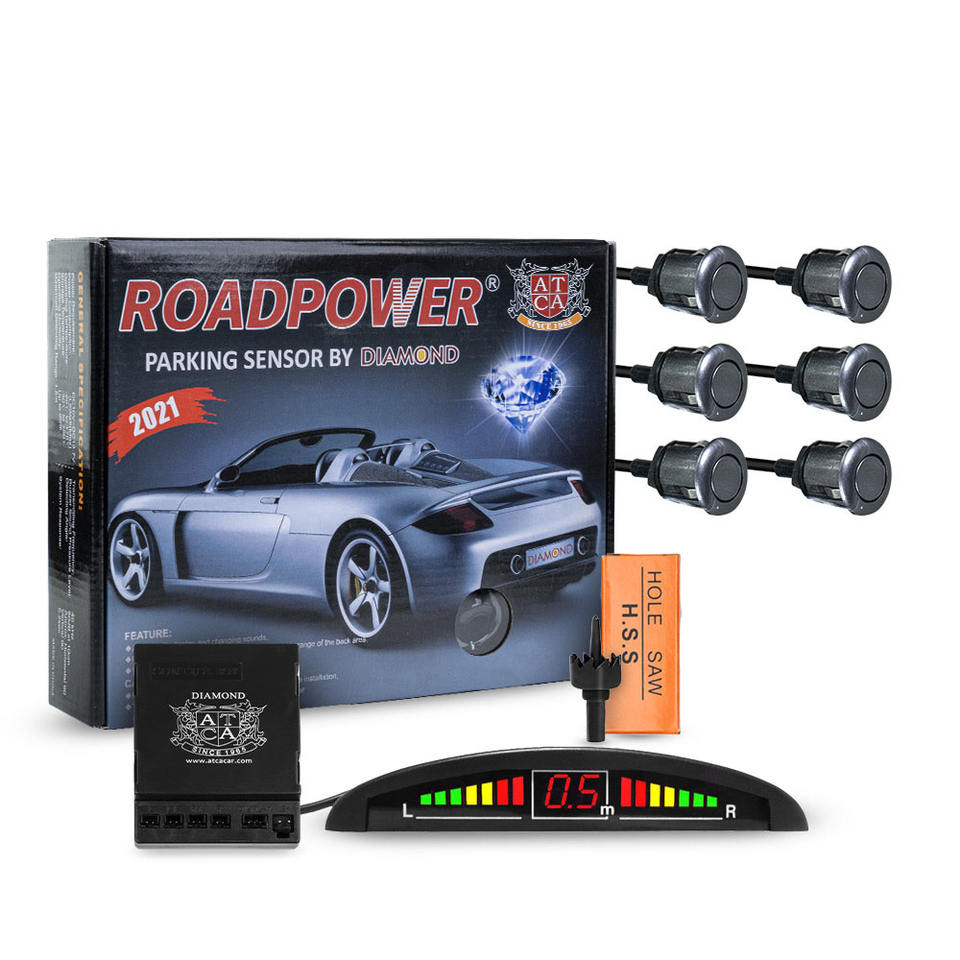เซ็นเซอร์จอดรถ Roadpower Diamond 6 จุด พร้อมจอ LED แสดงผล ระยะตรวจจับ 0.3-1.5 เมตร ใช้ไฟ DC 10V-14.7V พร้อมเสียงเตือนเพื่อการจอดรถที่ปลอดภัย