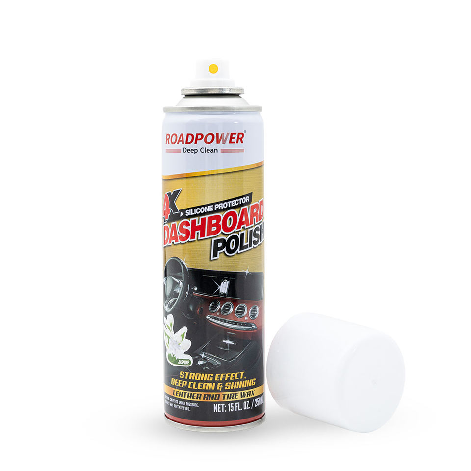 โรดพาวเวอร์ 4X สเปรย์ขัดเงาแผงหน้าปัดซิลิโคน ทำความสะอาดล้ำลึกและเพิ่มความเงางามสำหรับหนัง ยางรถยนต์ และป้องกันรังสียูวีสำหรับพื้นผิวภายใน