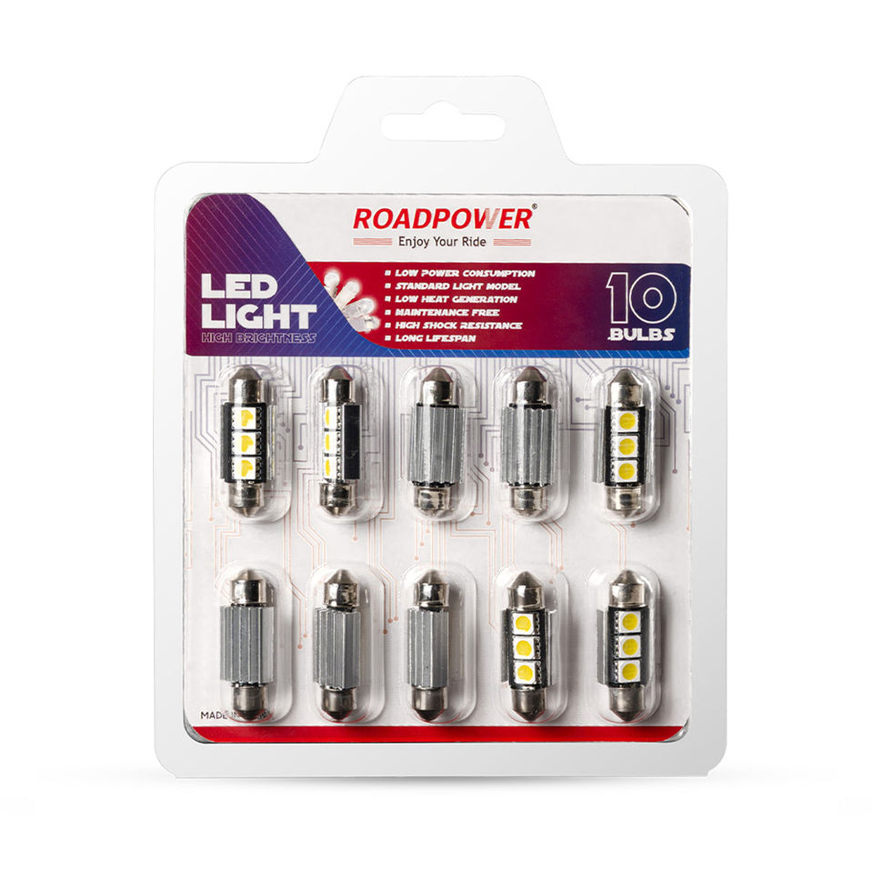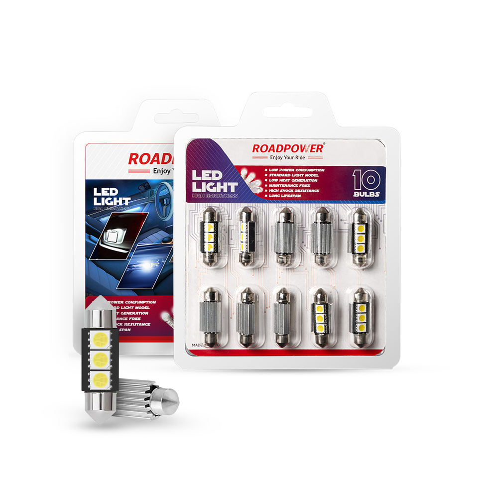 โรดพาวเวอร์(RP-ROOF10-G3) ไฟ LED สำหรับตกแต่งภายในและหลังคารถยนต์แบบเฟสตูน ขนาด 36 มม. แพ็ค 10 ชิ้น - สีขาวนวล 6000K น้ำหนัก 15 กรัม ต่อชิ้น