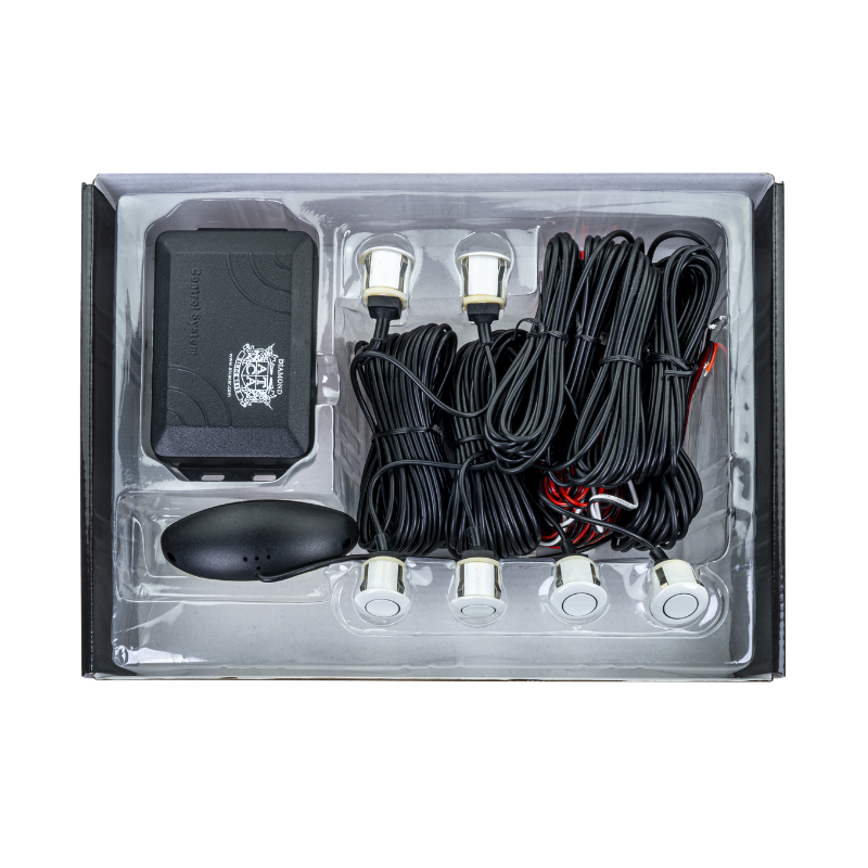 พลังงานถนนที่เชื่อถือได้เซ็นเซอร์จอดรถเพชรจอแสดงผล LED ระยะการตรวจจับ0.3-1.5เมตรการแจ้งเตือนเสียงสำหรับความปลอดภัยในการจอดรถการชน
