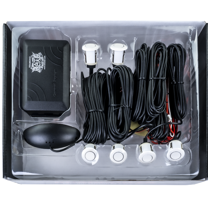 เซ็นเซอร์จอดรถ Roadpower Reliable Diamond แบบ 4 ชิ้น พร้อมจอ LED แสดงผล ระยะตรวจจับ 0.3-1.5 เมตร ใช้ไฟ DC 10V/14.7V พร้อมเสียงเตือนเพื่อความปลอดภัย