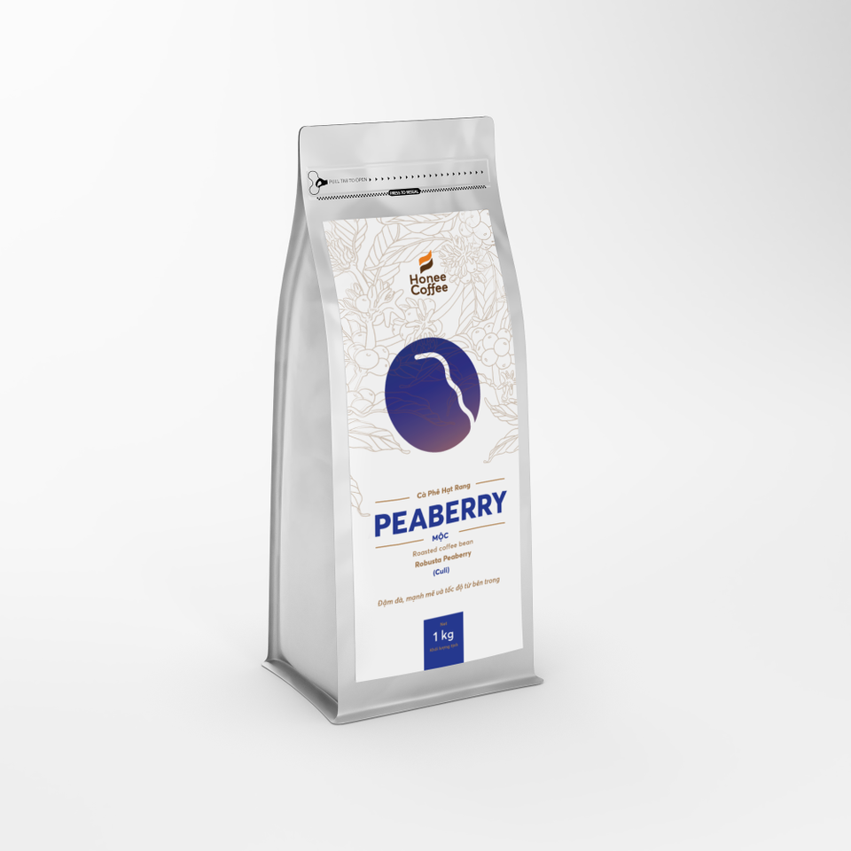 เมล็ดกาแฟพีเบอร์รี่คั่ว 100% พีเบอร์รี่ คั่วระดับกลาง 250 กรัม 500 กรัม 1 กิโลกรัม ต่อถุง ยี่ห้อ ผลิตในเวียดนาม