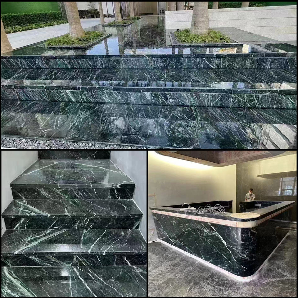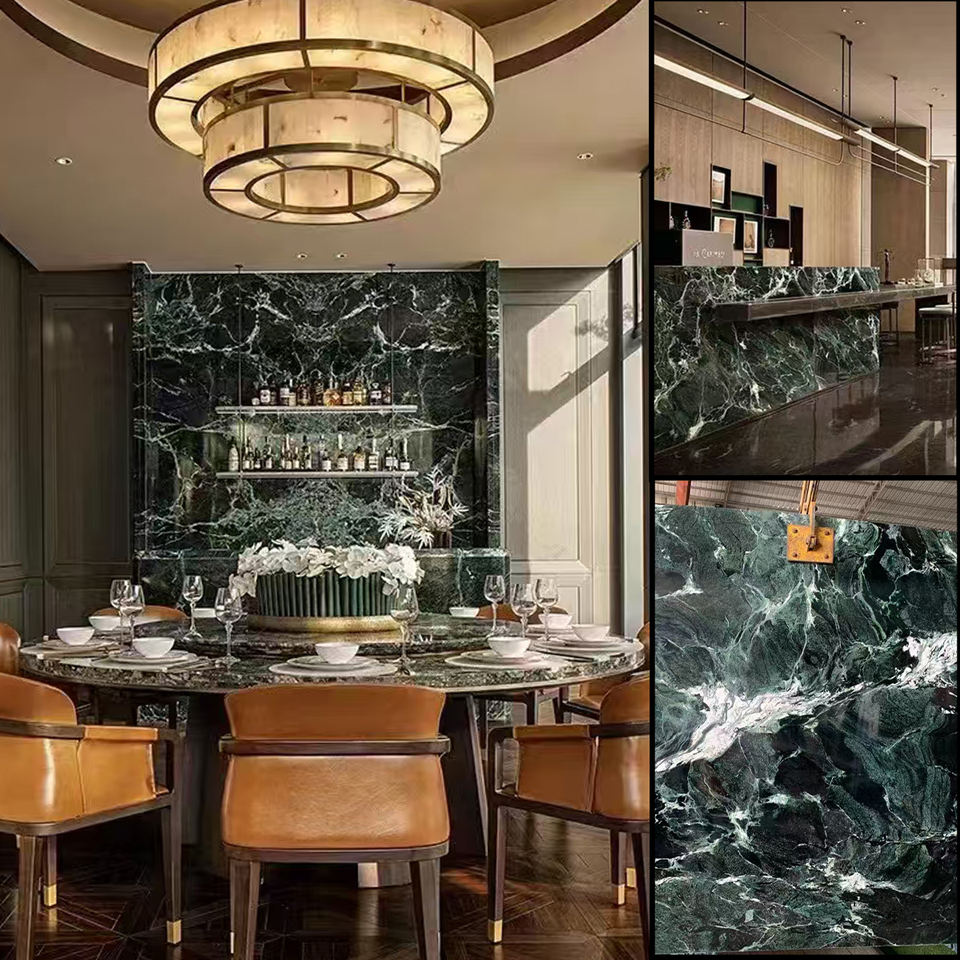 Roayl VERDE apli กระเบื้องหินอ่อนสีเขียวเข้มสำหรับโครงการตกแต่งบ้านบันไดวิลล่าอ่างหินอ่อนเคาน์เตอร์ตกแต่งผนัง
