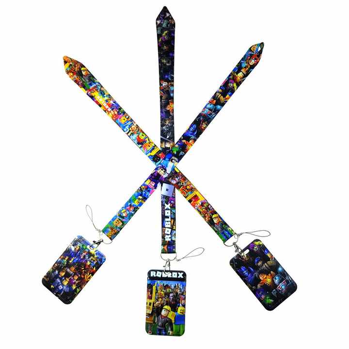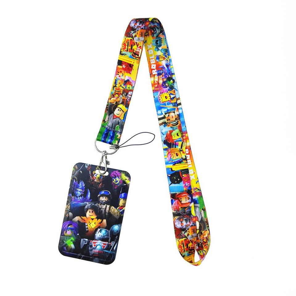 สายคล้องคอการ์ตูน Roblox สำหรับโทรศัพท์ บัตรประจำตัว กล้อง ซองใส่บัตร ทำจากโพลีเอสเตอร์ทนทาน พร้อมตะขอเกี่ยว