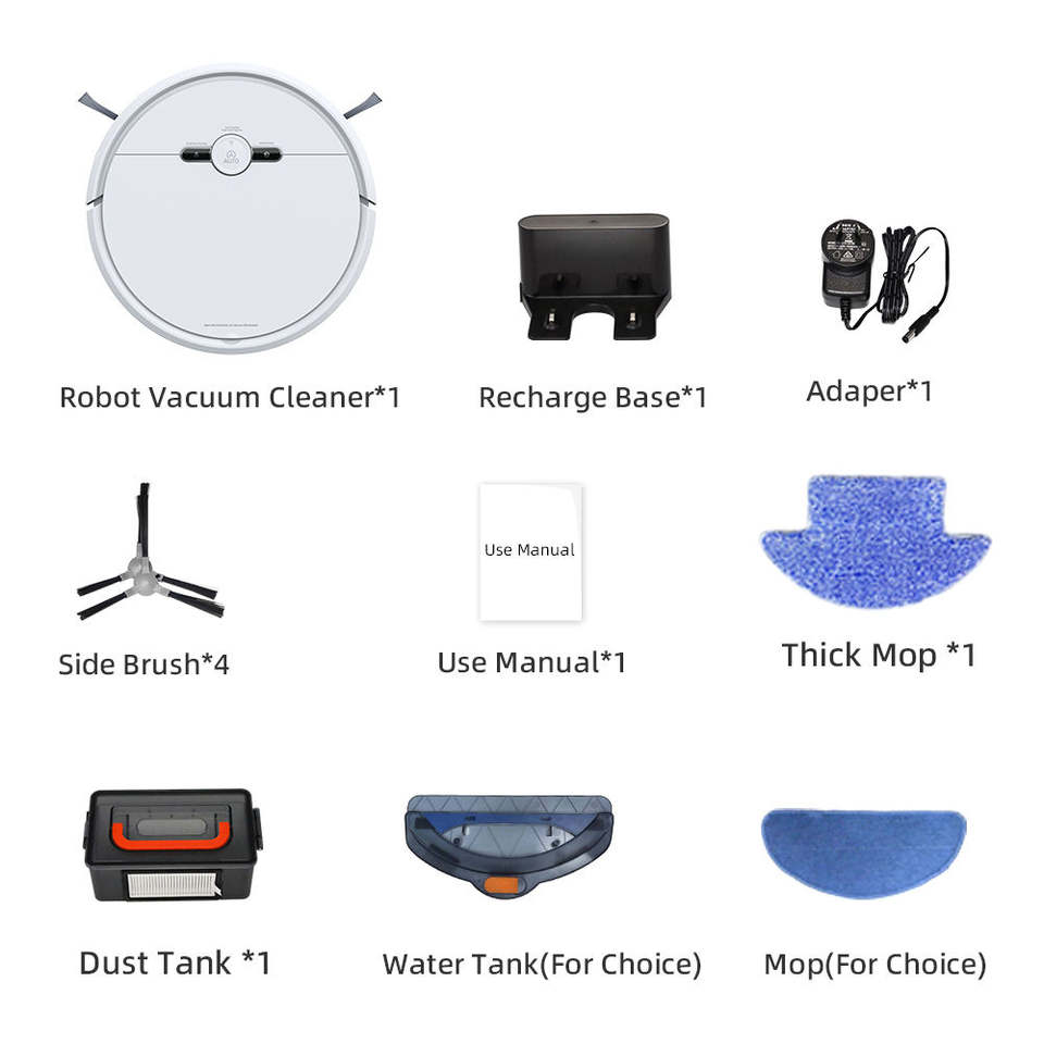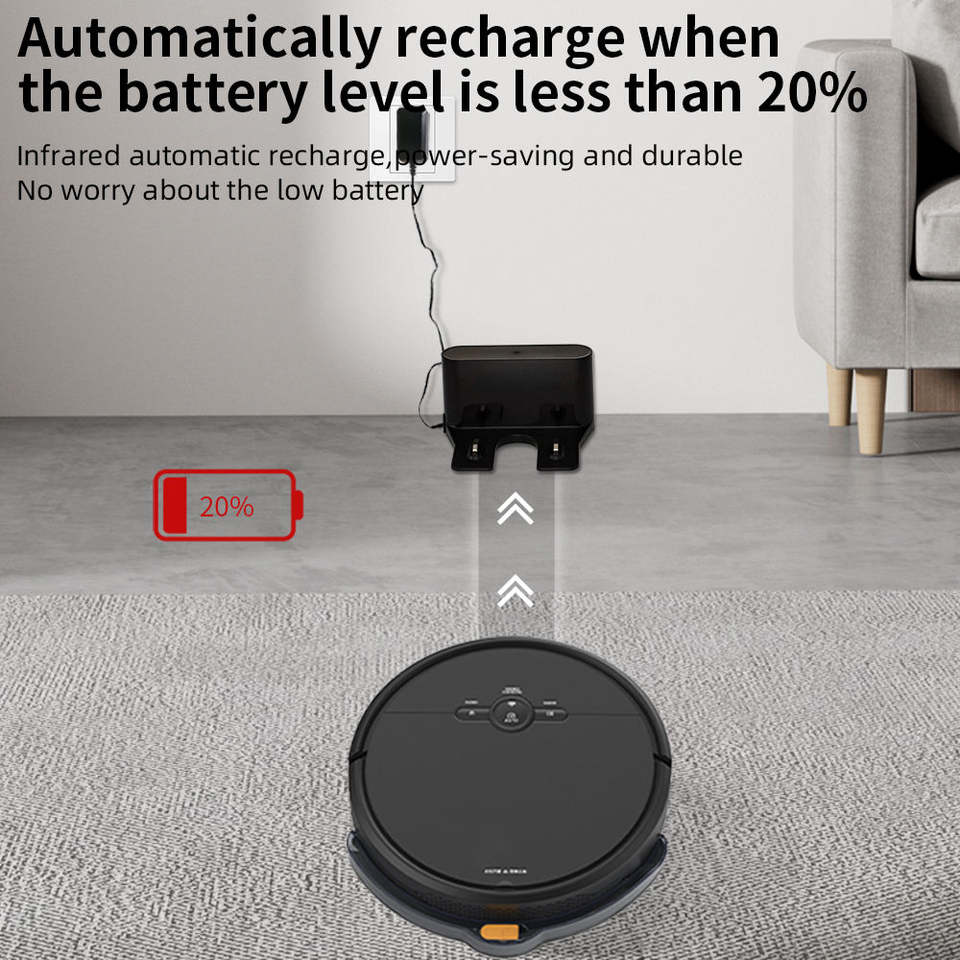 หุ่นยนต์ดูดฝุ่นแบบชาร์จเองได้ ควบคุมผ่านแอป ถังน้ำสำหรับถูพื้นแบบเปียก หุ่นยนต์ดูดฝุ่นแรงดูด 1000Pa เครื่องกวาดพื้นไฟฟ้า